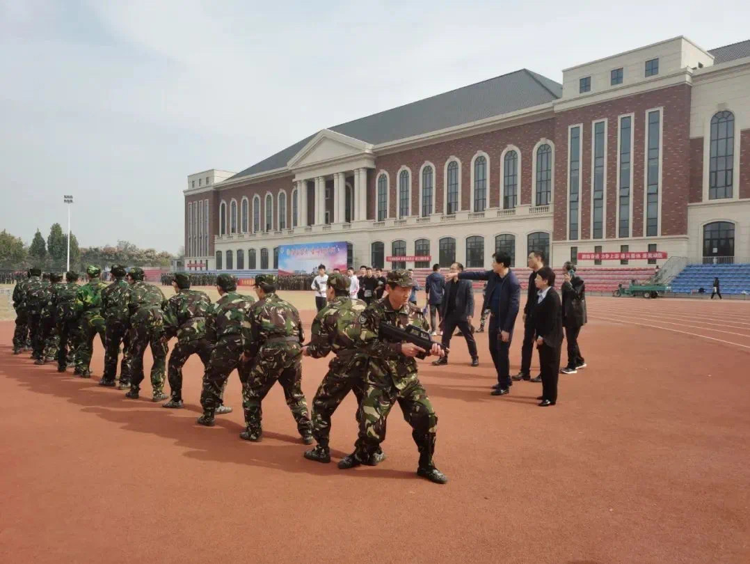 新生前期军训成果,同时希望同学们秉承有冠必争,有标必夺的精神,积极配合教官训练,以更加饱满的热情投入到军训中,展现体院风采,彰显体育精神,在最后的军训会操中,向全校师生展示体院学子良好的精神面貌!