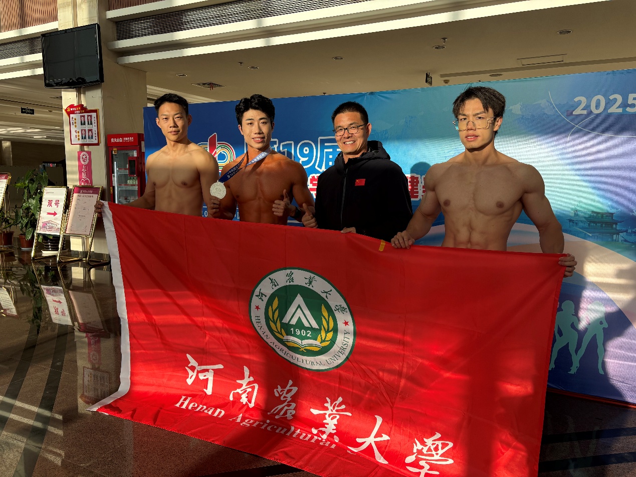 院长唐大鹏担任领队,李高华、杨振华担任教练指导运动员们备赛、参赛。最终,23级社会体育指导与管理专业学生张鹏飞获得丙组健身项目的银牌、22级社会体育指导与管理专业学生乔河深获得丙组健身模特项目的第六名、22级外国语学院学生黄相锟获得甲组健体项目的第九名。